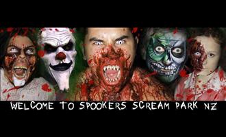 Walk in, freak out! Spookers Haunted Attraction Scream Park takes you on a trip through the scariest, creepiest, most blood-curdling attractions outside of America. Dozens of Spooks will keep the adrenaline pumping and the screams coming. Spookers utilizes a “theatrical, psychological horror” that strives to be a full-on terrifying experience. R16 attractions include: